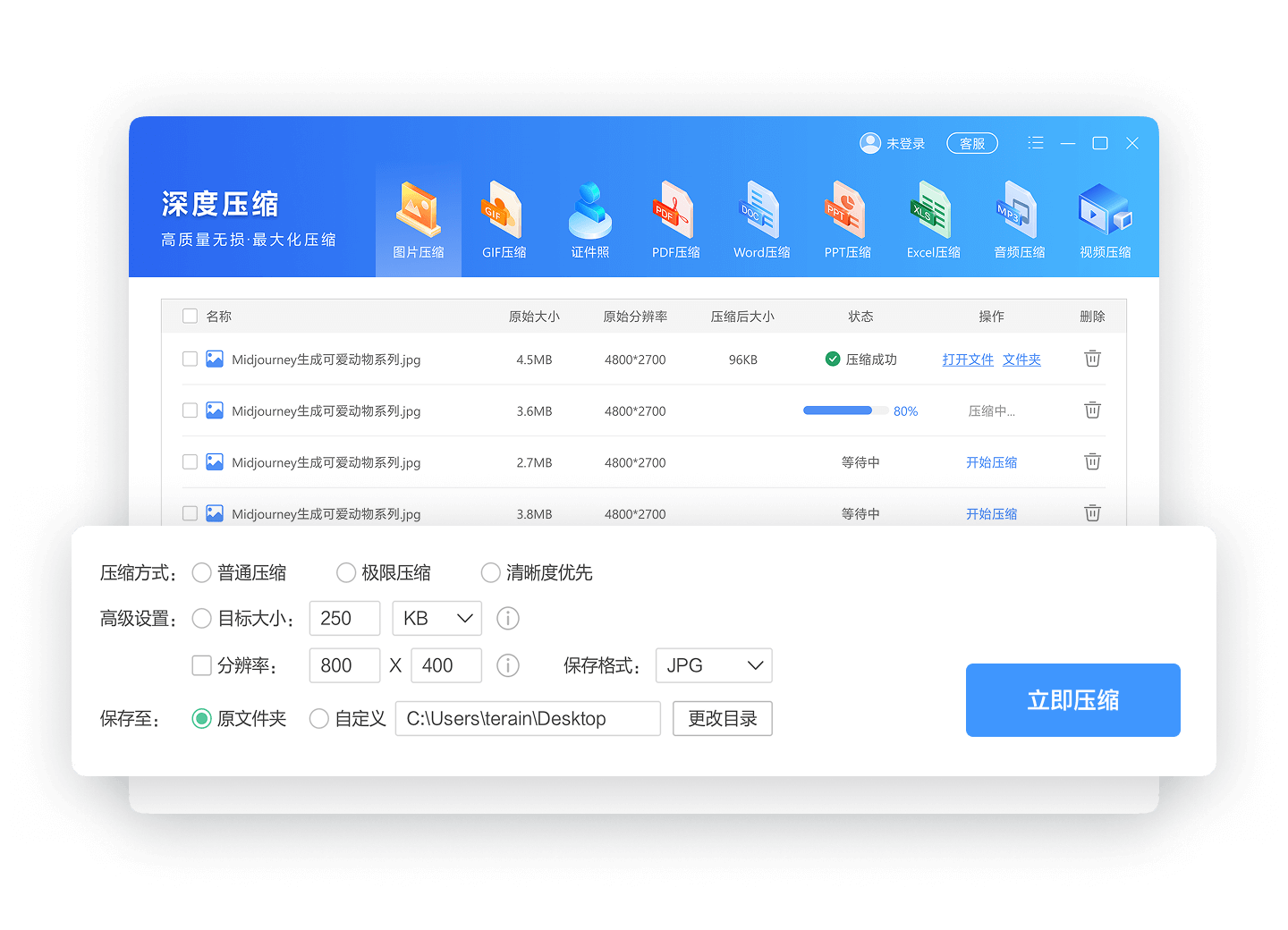 64种超全格式支持 PDF/文档/音视频深度压缩